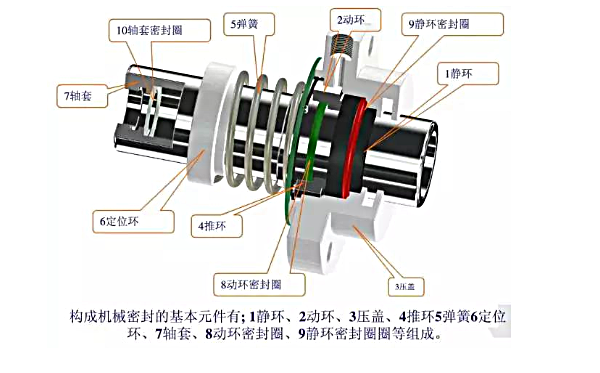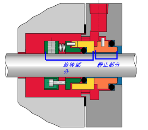 機封由旋轉(zhuǎn)部件和靜止部件兩部分組成(見下圖),靜環(huán)面成為密封的主密封面。