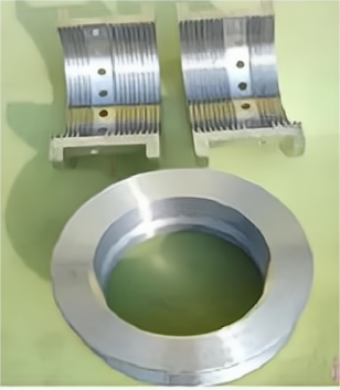 曲折式迷宮密封也分全體和鑲嵌兩種結(jié)構(gòu),特點是密封齒的伸出高度不一樣,而且高低齒相間擺放,與之相配的軸表面,是特制的凹凸溝槽,這種高低齒與凹凸槽相配合的結(jié)構(gòu),使平滑的密封間隙變成了曲折式,因此,增加了流動阻力,提高了密封效果。缺點是只能用在有水平剖分面的缸體或隔板中,而且密封體也要做成水平剖分型。