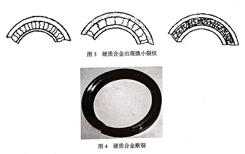 密封的動環(huán)和靜環(huán)出現(xiàn)微小的裂紋(圖 3、圖4),導(dǎo)致密封泄漏。