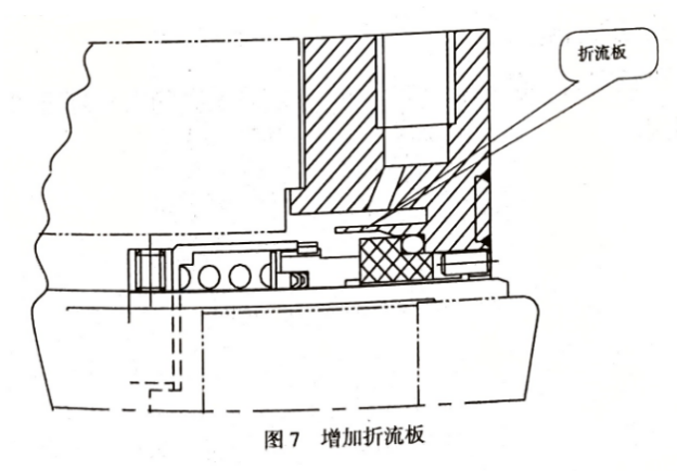 改變沖洗位置,或增加折流板(圖7),或采用多點(diǎn)沖洗的辦法。