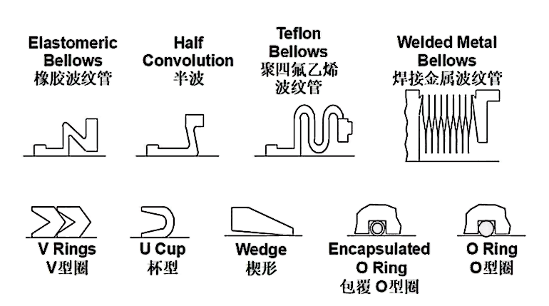 輔佐密封包含動、 靜環(huán)的密封圈, 大都做成O形圈、 V形圈、 矩形圈、 楔形圈或梯形圈。