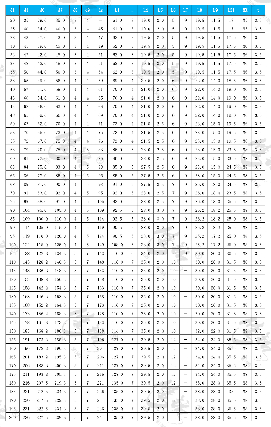 具有與“M7N”系列同樣設(shè)計(jì)性能,除驅(qū)動座的安裝長度外,其它安裝尺寸(d<100mm)符合 DIN 24960 標(biāo)準(zhǔn)。