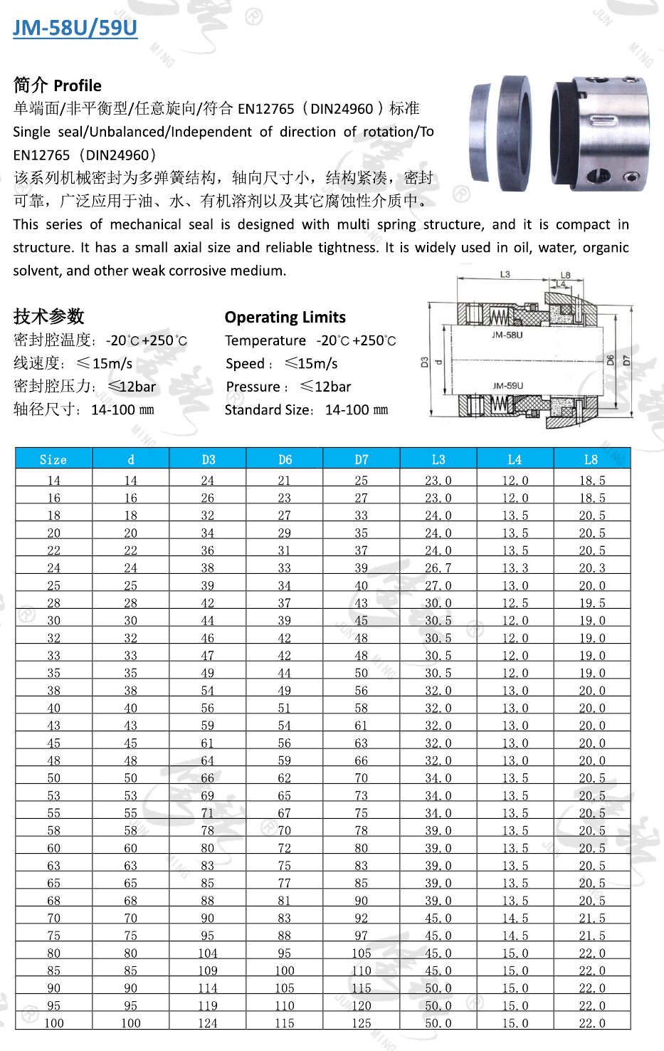 該系列機(jī)械密封為多彈簧結(jié)構(gòu),軸向尺寸小,結(jié)構(gòu)緊湊,密封可靠,廣泛應(yīng)用于油、水、有機(jī)溶劑以及其它腐蝕性介質(zhì)中。