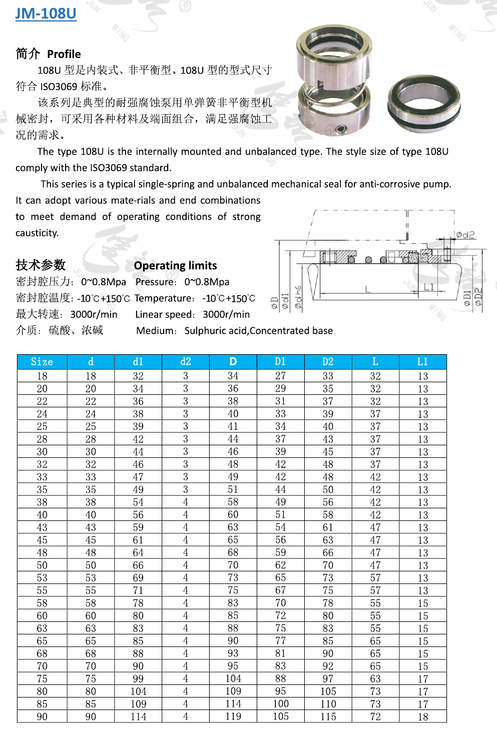 該系列是典型的耐強腐蝕泵用單彈簧非平衡型機械密封,可采用各種材料及端面組合,滿足強腐蝕工況的需求。